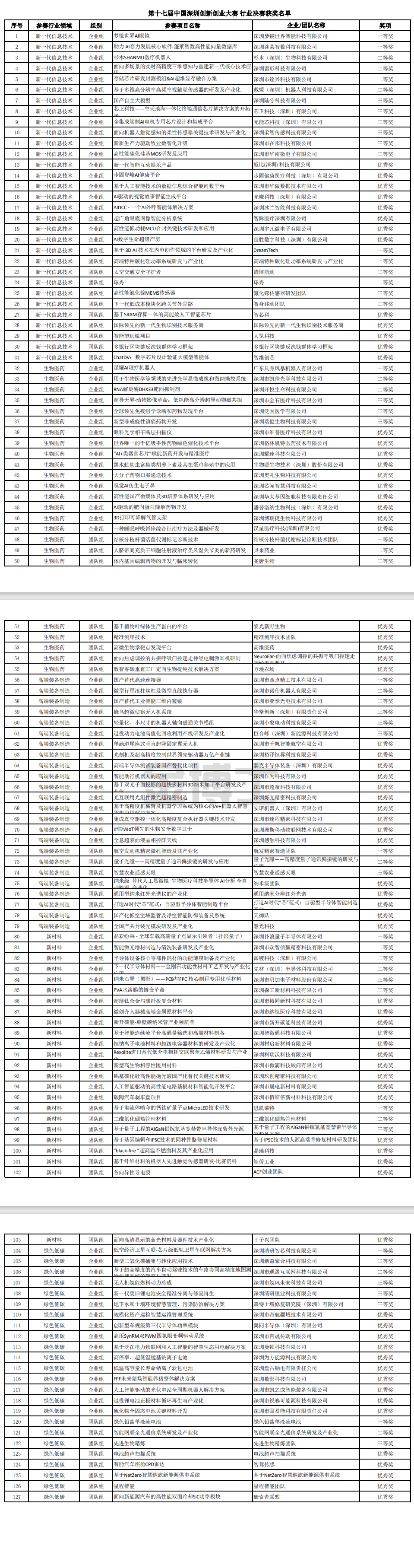 關(guān)于公布2025年第十七屆中國深圳創(chuàng)新創(chuàng)業(yè)大賽行業(yè)決賽獲獎名單的通知